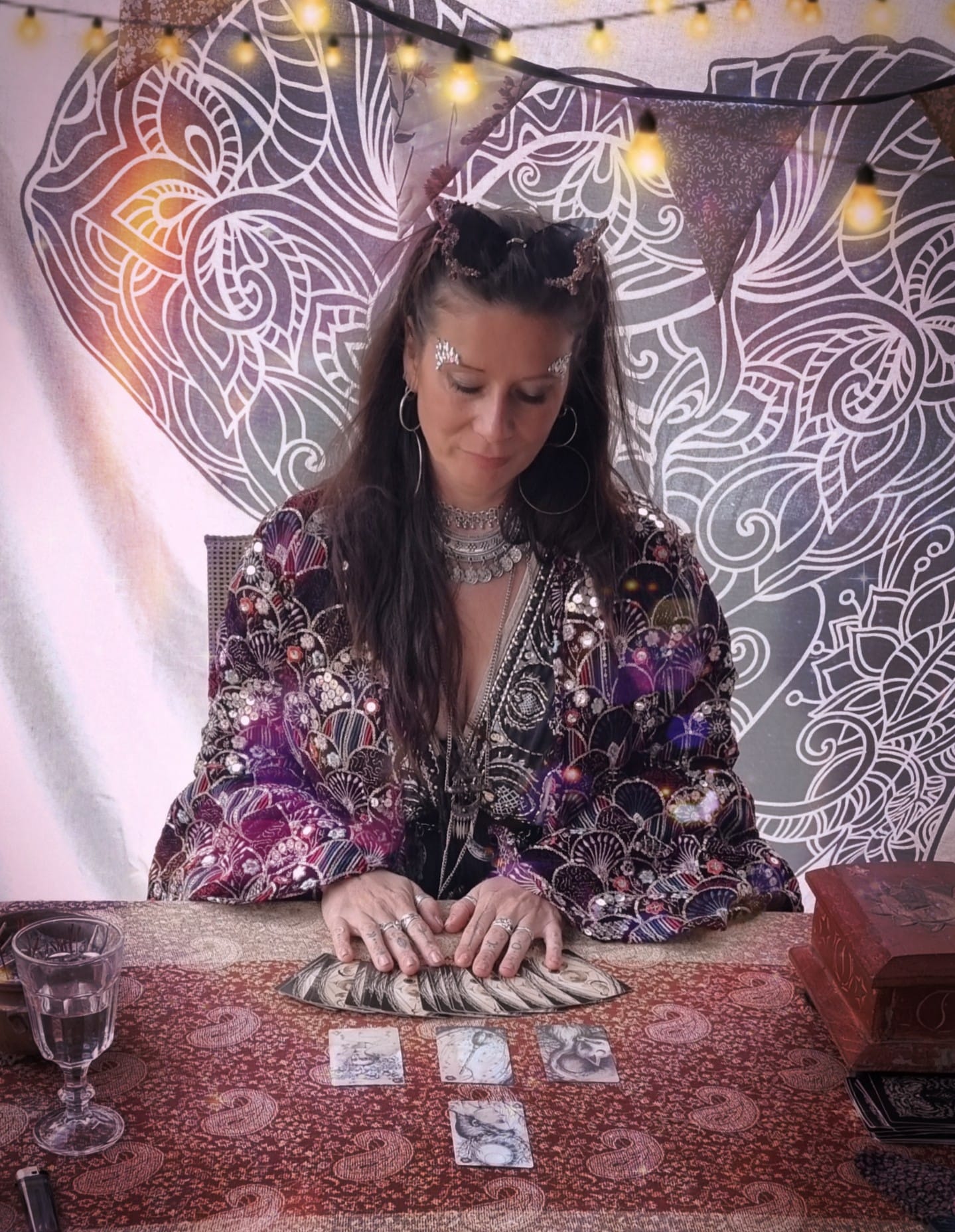 Tussen wierook en fluisteringen, tussen sterrenstof en stilte,legt zij de kaarten die jouw ziel herkennen.
